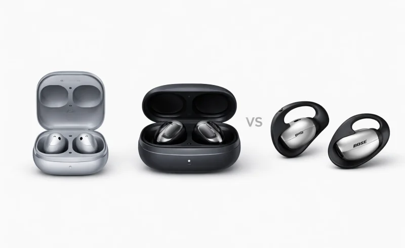 Conclusion: For long-wear comfort and avoiding in-ear pressure, Bose Ultra Open Earbuds have the clearer ergonomic advantage; for stability plus isolation, the in-ear Samsung/Soundcore approach fits more use cases.